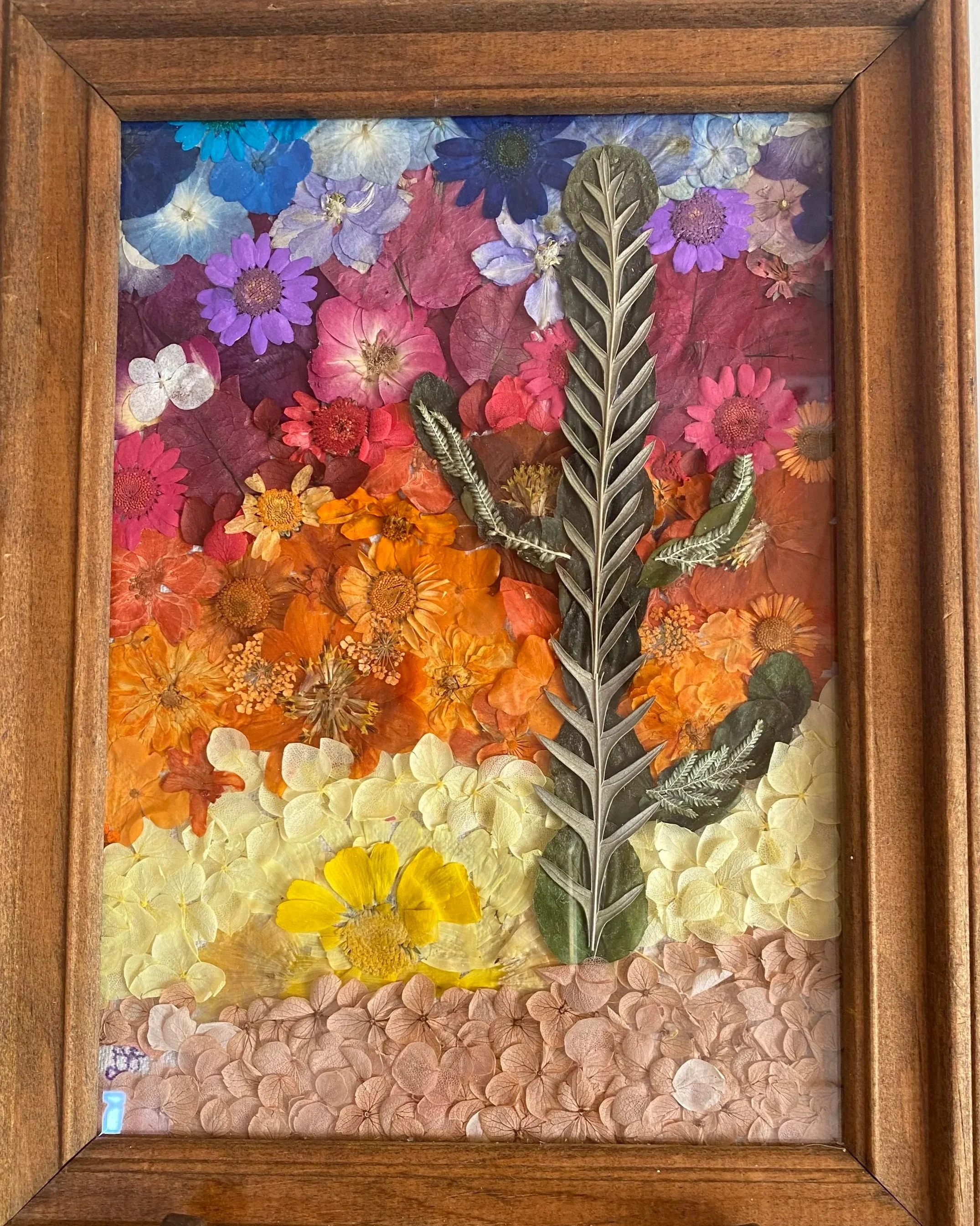 Each artwork is made using real flowers and botanicals that I press and preserve by hand over several months. Because of the time and fragility involved, I only create a limited number of pieces each year. No prints or reproductions are made.