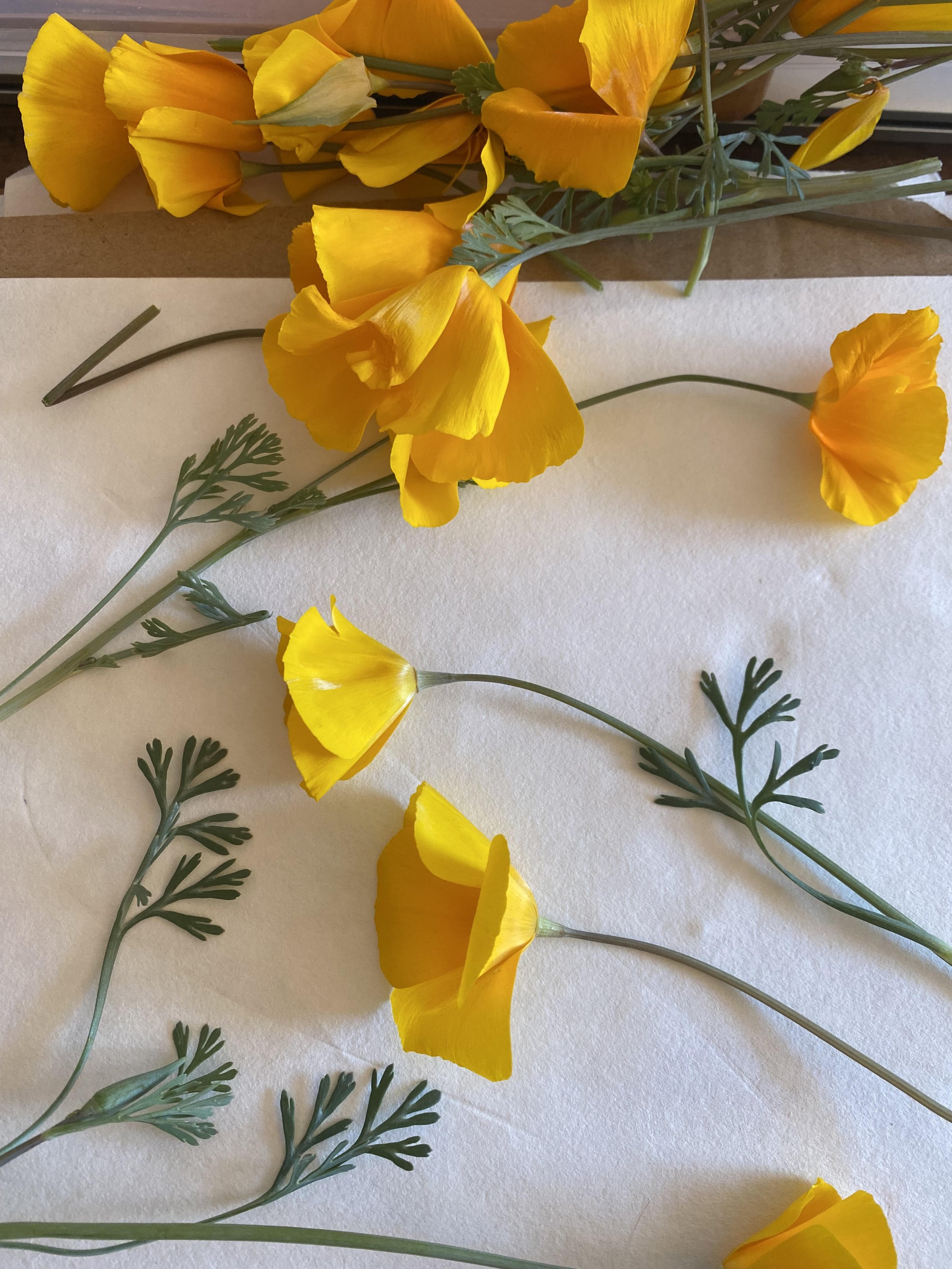 Freshly gathered Mexican poppies, heading under the press. Stay tuned.